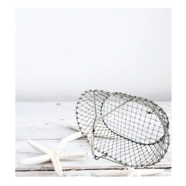 This very large vintage gray iron basket adds instant coastal charm to any interior. With its authentic weathered finish, it’s perfect for retro farmhouse, seaside, or boho-inspired decor. Ideal for storing shells, driftwood, blankets, or garden accessories like boots.