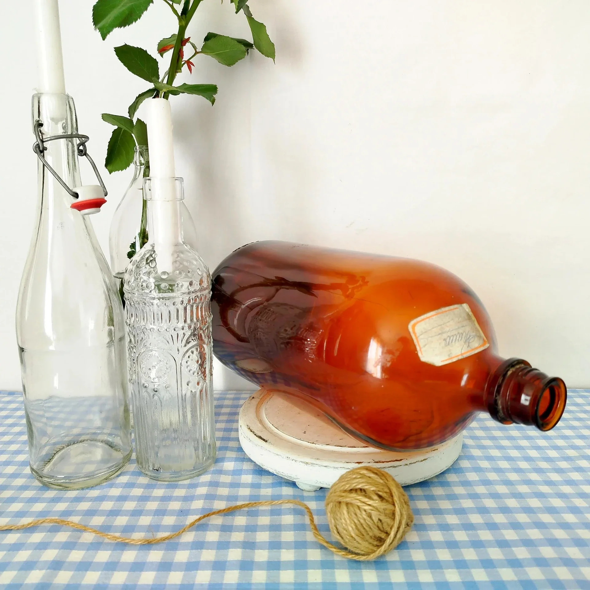 Originally used for storing homemade aperitifs or pharmacy liquids, this bottle now shines as a decorative vase, candle holder, or centerpiece in a cabinet of curiosities.
